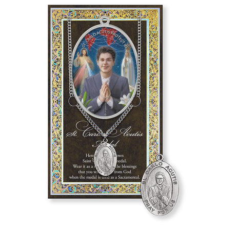 Saint Carlo Acutis Genuine Pewter Medal and Prayer Card