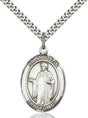 St. Justin Medal - Pewter / 3/4" x 1/2" (Dime Size) / 18" Rhodium Plated Medium Curb Chain with Clasp (1.7mm) is backordered and will ship as soon as it is back in stock.