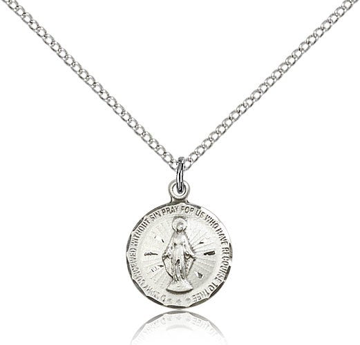 Petite Round Miraculous Medal Necklace - Sterling Silver / 18" Sterling Silver Light Curb Chain with clasp (1.2mm) is backordered and will ship as soon as it is back in stock.