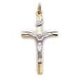 This is one of the most attractive women's crucifix pendants. You'll love the graceful bevel design of the cross that brings your attention to the sun burst design behind the head of Christ. The silver tone corpus has delicate features and pairs perfectly with the goldtone cross.