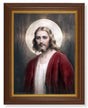 With a look and feel of textured canvas, this 8x10 inch artwork print is mounted onto artboard and then framed. The image features a beautiful portrait of Christ. Framed in a Classic Dark Walnut Finish. Overall dimension with print and frame is 10.5 inches by 12.5 inches.