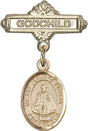 Infant of Prague Charm and Godchild Badge Pin - 14K Solid Gold / 1" x 5/8" is backordered and will ship as soon as it is back in stock.