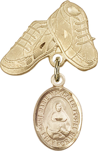 Marie Magdalen Postel Charm and Baby Boots Pin - 14K Solid Gold / 1" x 5/8" is backordered and will ship as soon as it is back in stock.