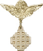 Jerusalem Cross Charm and Angel with Smaller Wings Badge Pin - 14K Solid Gold / 7/8" x 3/4" is backordered and will ship as soon as it is back in stock.
