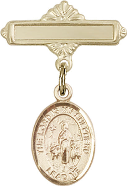 Lord Is My Shepherd Charm and Polished Engravable Badge Pin - 14K Solid Gold / 1" x 5/8" is backordered and will ship as soon as it is back in stock.