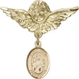 Maria Stein Charm and Angel with Larger Wings Badge Pin - 14K Solid Gold / 1 1/8" x 1 1/8" is backordered and will ship as soon as it is back in stock.