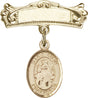 Maria Stein Charm and Arched Polished Engravable Badge Pin - 14K Solid Gold / 7/8" x 3/4" is backordered and will ship as soon as it is back in stock.