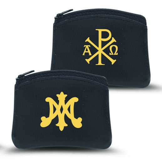 This beautiful rosary case is just what you need to protect your special rosary! It's made of soft genuine sheepskin material with a rich burgundy velvet lining on the inside. The gold stamped designs feature a Chi-Rho cross on one side and the symbol for Our Lady of Mt. Carmel on the other side. Made to fit any standard rosary.