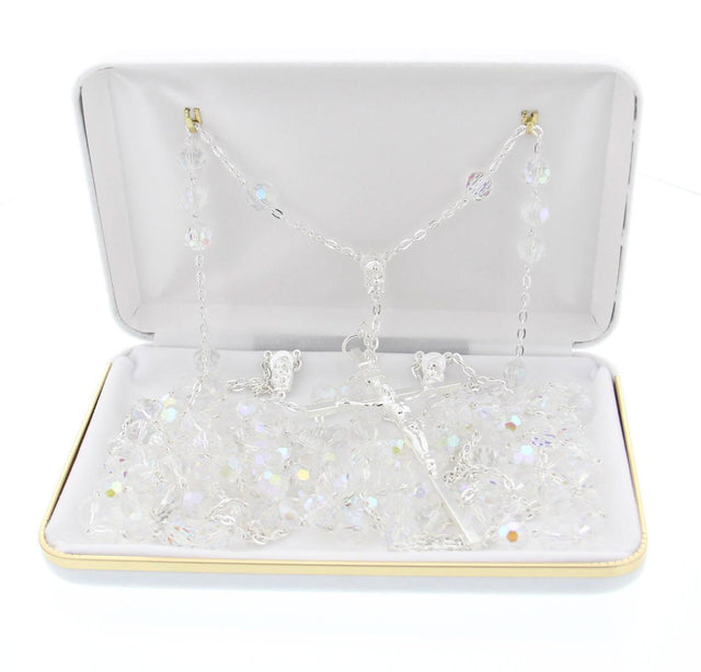 Crystal Lasso Wedding Rosary with Silver-tone Accents - Without Deluxe Box / 10mm is backordered and will ship as soon as it is back in stock.