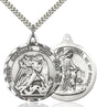 This handsomely sized St. Michael pendant will make a fabulous men's pendant. It is bold in its design with a powerful image of the saint with high relief. He'll love wearing it every day! The back has an equally impressive raised image of a Guardian Angel.