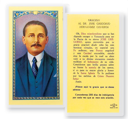 Juan Gregorio Hernandez is looked to as the patron of good health. His image is on the front of the holy card and a Spanish prayer on the back of the card.