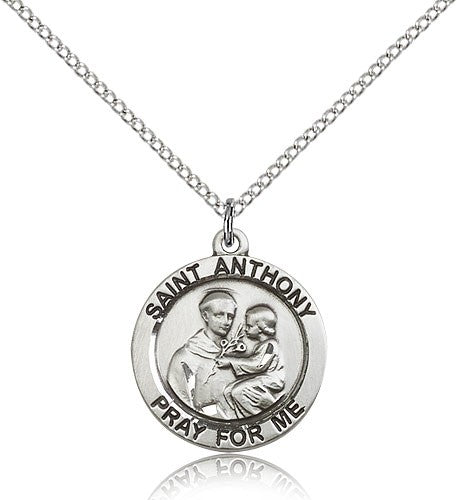St. Anthony of Padua Medal, Small - Sterling Silver / 18" Sterling Silver Light Curb Chain with clasp (1.2mm) is backordered and will ship as soon as it is back in stock.