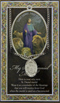 The prayer card pamphlet measures approximately 3 1/4 inch x 5 1/2 inch. The pendant is made of pewter and comes with an endless 24 inch long stainless steel chain. Pendant size is 1 1/8 inch high. Made in Italy.