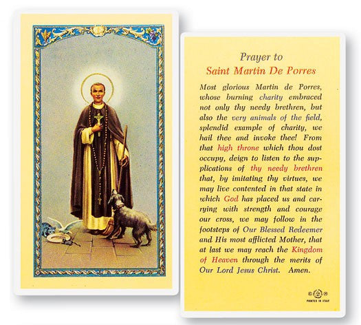 St. Martin De Porres Laminated Prayer Card - 1 Prayer Card .99 each / 4 1/2" x 2 1/2" is backordered and will ship as soon as it is back in stock.