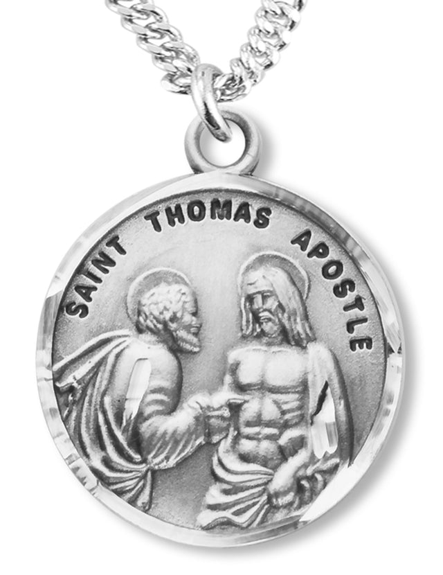 St. Thomas the Apostle Medal - Sterling Silver / 3/4" Diameter / 18" Surgical Stainless Steel Medium Curb Chain with Clasp is backordered and will ship as soon as it is back in stock.
