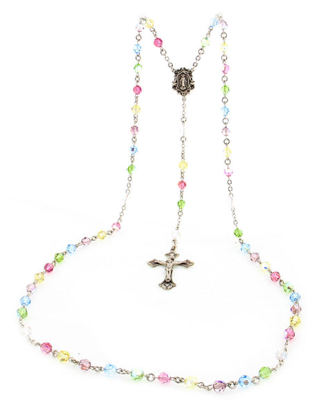 Heirloom Sterling Silver Miraculous Rosary with 10mm Swarovski Crystal Beads