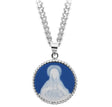 Immaculate Heart of Mary Cameo Necklace - Blue | Silver / 7/8" x 3/4" / 18" Surgical Stainless Steel Medium Curb Chain is backordered and will ship as soon as it is back in stock.