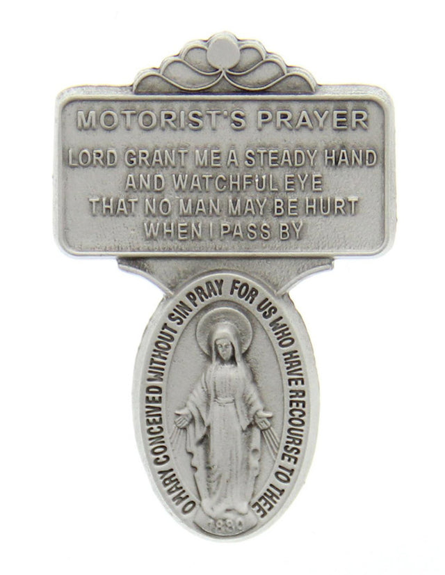 Miraculous Medal Visor Clip, Pewter - 2 1/2'H