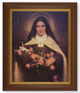 With a look and feel of textured canvas, this 8x10 inch artwork print is mounted onto artboard and then framed. The image features an image of Saint Therese wearing her nun"s habit and staring intensely as she holds a crucifix and roses in her arms. Framed in a Classic Dark Walnut Finish. Overall dimension with print and frame is 10.5 inches by 12.5 inches.
