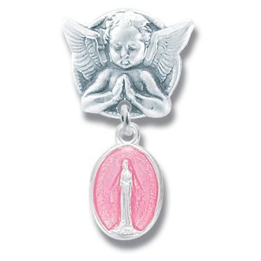 Baby Pin Guardian Angel and Pink Miraculous Medal