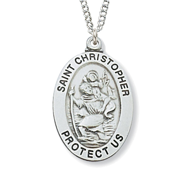 St. Christopher Medal Sterling Silver Wide Oval for Boys