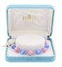 The extender chain ends with a dainty crystal bead and allows the bracelet to fit a wrist up to 7.5' in diameter. Comes in a lovely velvet blue gift box. Hand assembled in the USA.