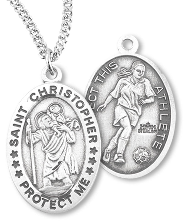 St. Christopher Soccer Sterling Silver Medal for Girls
