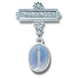 Godchild Baby Pin with Blue Sterling Silver Miraculous Medal - Silver | Blue / 1 1/8" x 5/8" is backordered and will ship as soon as it is back in stock.