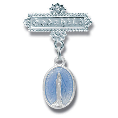 Godchild Baby Pin with Blue Sterling Silver Miraculous Medal