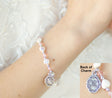 Alternating imitation heart shape beads and pink crystal glass beads create a beautiful bracelet to wear on First Communion day and all the days after. Very comfortable to wear and easy to slip on and off. Two-sided dangle charm: Chalice and My First Communion.