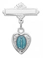 Heart Shaped Miraculous Baby Pin - Sterling Silver and Blue - Silver | Blue / 1" x 13/16" is backordered and will ship as soon as it is back in stock.