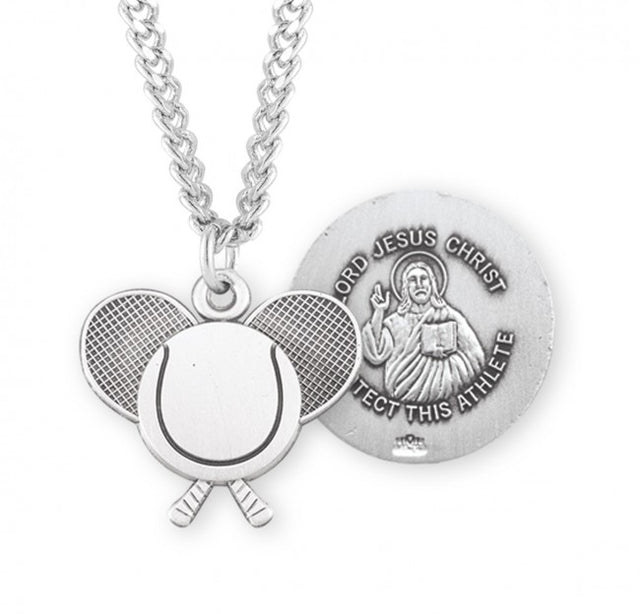Jesus Christ Tennis Sterling Silver Medal - Sterling Silver / 1" x 13/16" / 24" Surgical Stainless Steel Heavy Curb Chain Endless is backordered and will ship as soon as it is back in stock.