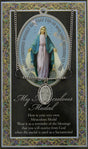 This lovely Miraculous Mary pendant set features a genuine pewter medal paired with a beautiful gold embossed prayer card pamphlet.