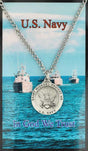 Round St. Michael Navy Medal with Prayer Card - Silver tone / 7/8" Diameter is backordered and will ship as soon as it is back in stock.