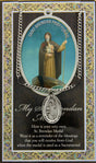 The prayer card pamphlet measures approximately 3 1/4 inch x 5 1/2 inch. The pendant is made of pewter and comes with an endless 24 inch long stainless steel chain. Pendant size is 1 1/8 inch high. Made in Italy.
