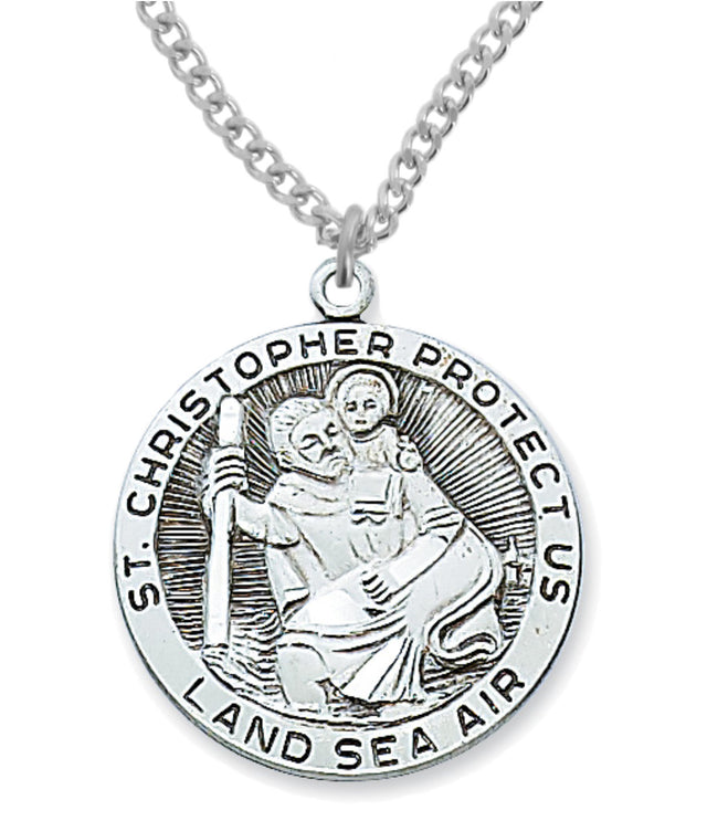 St. Christopher Land, Sea, Air Medal Sterling Silver - 1 1/8 inch