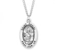 This Oval Shaped St. Daniel pendant displays an image of St. Daniel preaching the Gospel and holding up the scripture. The St. Daniel pendant is available in two sizes and has the following features;