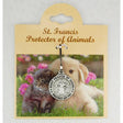 This is a lovely round pet medal made of silver pewter medal with an image of St. Francis that reads, 'St. Francis of Assisi - Protect my Pet.' The medal is presented on an adorable little card that has a sweet image of a puppy and kitten. The back of the medal is able to be personalized with your pet's name and a contact phone number for an additional fee. Pet medal dimension is approx. 3/4' diameter.