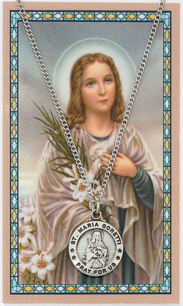 St. Maria Goretti Medal with Prayer Card - Silver-tone / 3/4" is backordered and will ship as soon as it is back in stock.