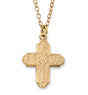 Women's four-way necklace has narrow budded cross bars with a beautiful center dove.