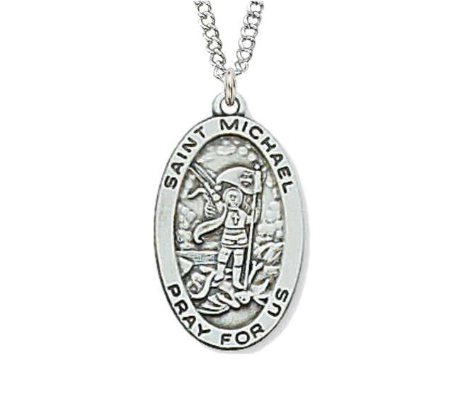 Oval St. Michael Medal Sterling Silver for Women - Silver / 3/4" is backordered and will ship as soon as it is back in stock.