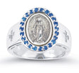 Sapphire Crystal Miraculous Medal Ring Sterling Silver for Women