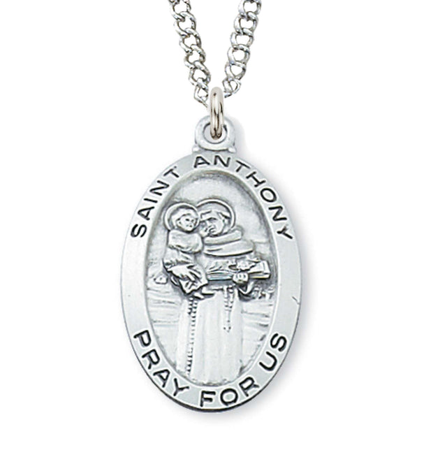 Oval classic shaped Saint Anthony Necklace with the words Saint Anthony Pray for Us. He is the patron saint of lost articles.