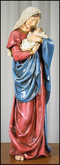This brilliant colored statue depicts Mary tenderly holding and gazing down on the little Baby Jesus. The statue stands nearly two feet tall and will make a stunning and much cherished devotional in your home, church setting, hospital or school.