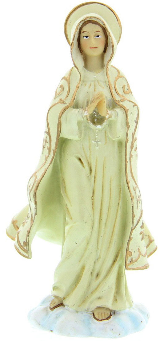 This resin statue of Our Lady of Fatima is beautifully designed with flowing robes and delicate features. We pray to Our Lady for help and for comfort and to become closer to our Lord. She reminds us of the importance of praying the rosary.