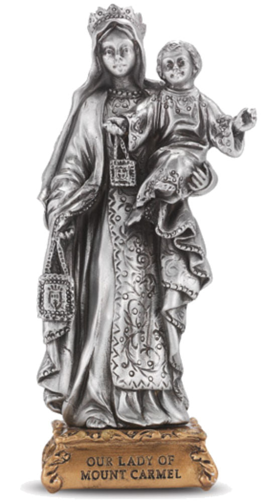 Our Lady of Mt Carmel Pewter Statue 4 Inch