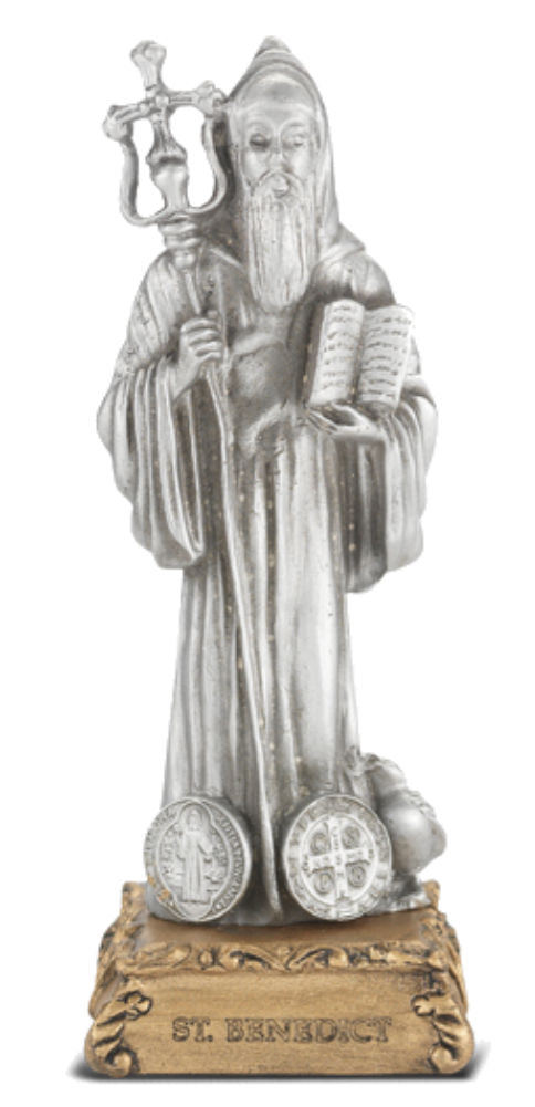 Saint Benedict Pewter Statue 4 Inch - Pewter / 4" is backordered and will ship as soon as it is back in stock.