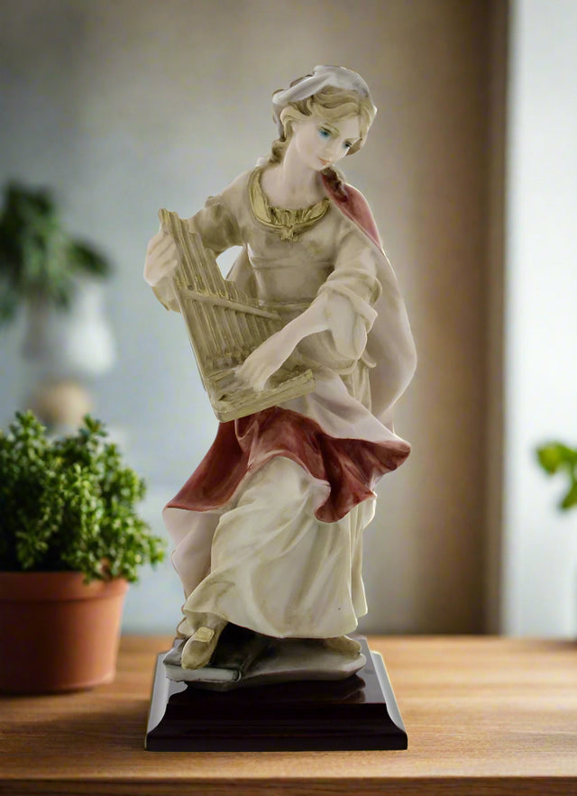 St. Cecilia Statue, Hand Painted Alabaster - 8 1/2" H