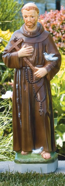 A larger St. Francis of Assisi statue can be found here. Standing at an impressive 24.5 inches high this statue will make a great additional to your garden or indoor space. We think his pose with cross and birds are very appropriate symbols of his life and love of Christ.