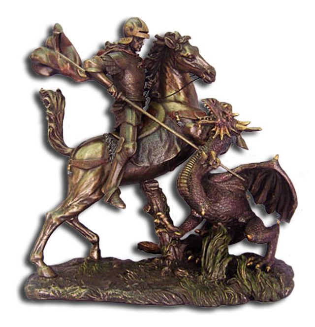 St. George with Dragon Statue in Bronzed Resin - 11.5 inches